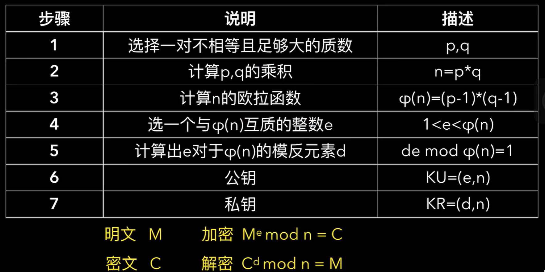 # python 代码表示为 m = c ** d % n